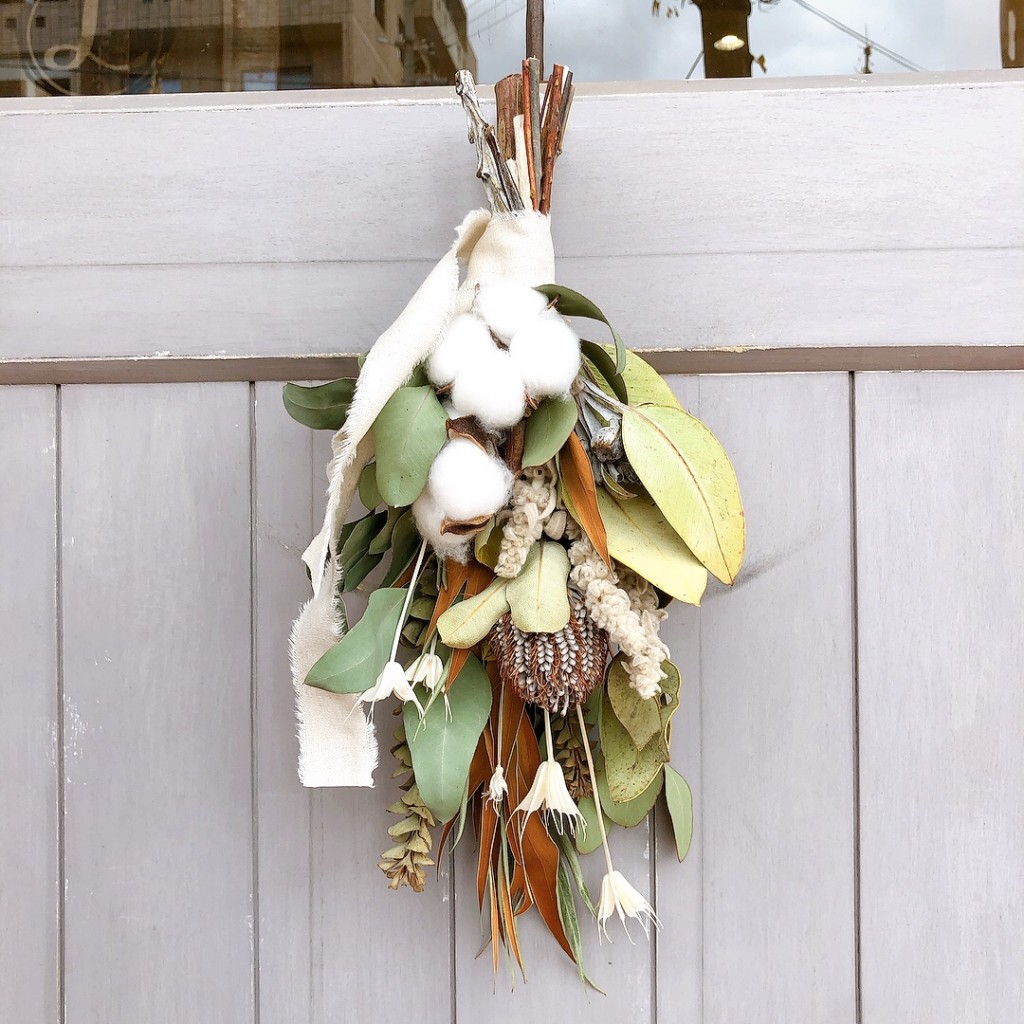そして毎年お店の扉にかけているクリスマスの飾りは、今年もスワッグにしましたo(^o^)o