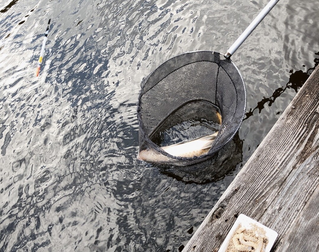 初めての釣りで大物が釣れて息子はご満悦!