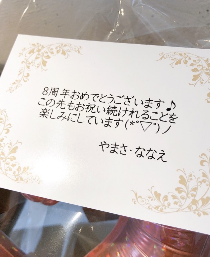 そして最後は8年間、ほぼ週1の休みのみで休むことなくお店に立ち続けてくれている主人にも感謝です♡