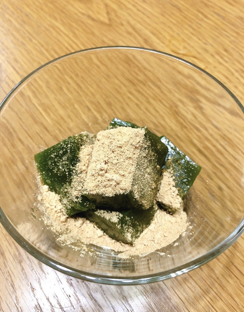 そのまま食べても抹茶の風味がしっかりきいていてほんのり甘くて美味しいのですが、きな粉をかけて食べるとまたまた美味しいっ♡