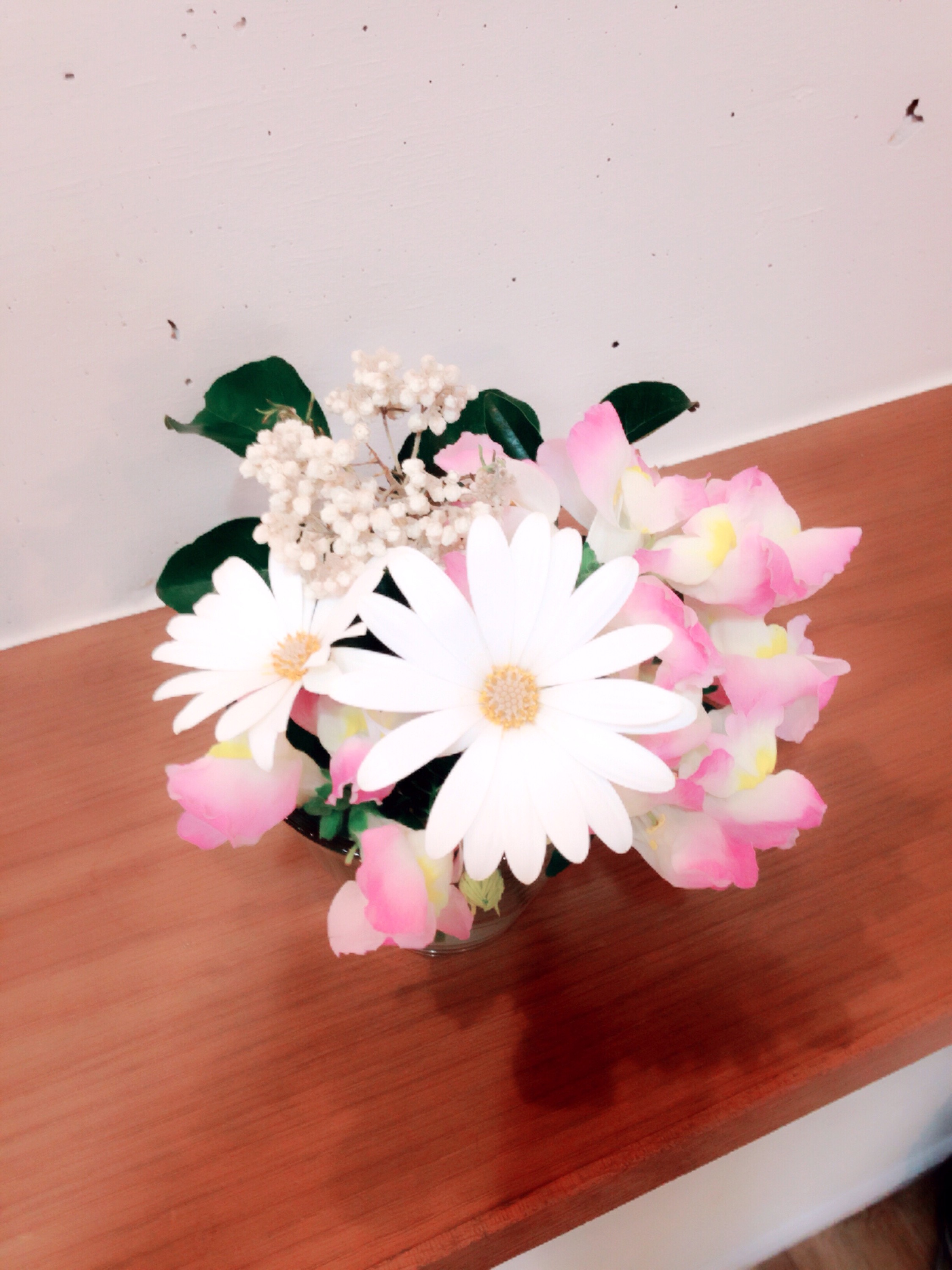 家に咲いていた金魚草とオステオスペルマムを組み合わせてみました(^-^)