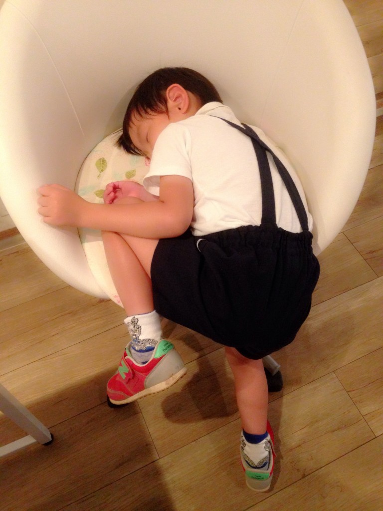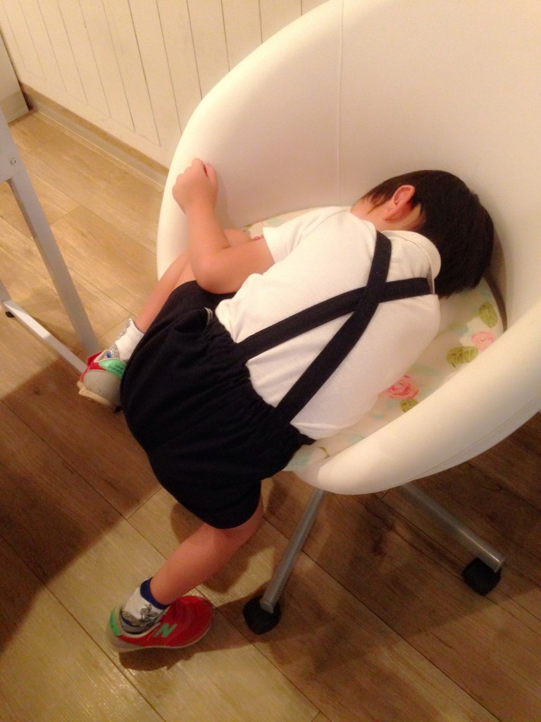 時々保育園帰りにお店に連れてきていますが、店で寝たのはこの3年半で初めてっ!!