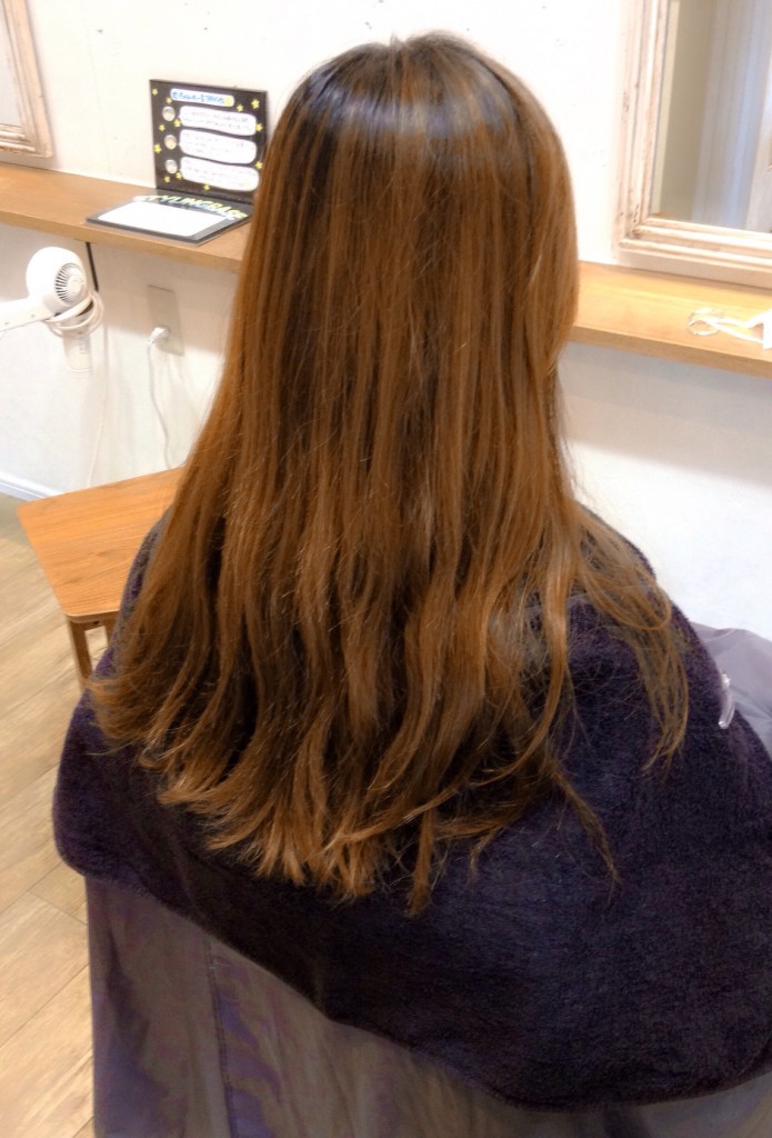 痛んでいた部分もほぼなくなり、トリートメントもしたのでツヤツヤサラサラに復活しました〜*\(^o^)/*