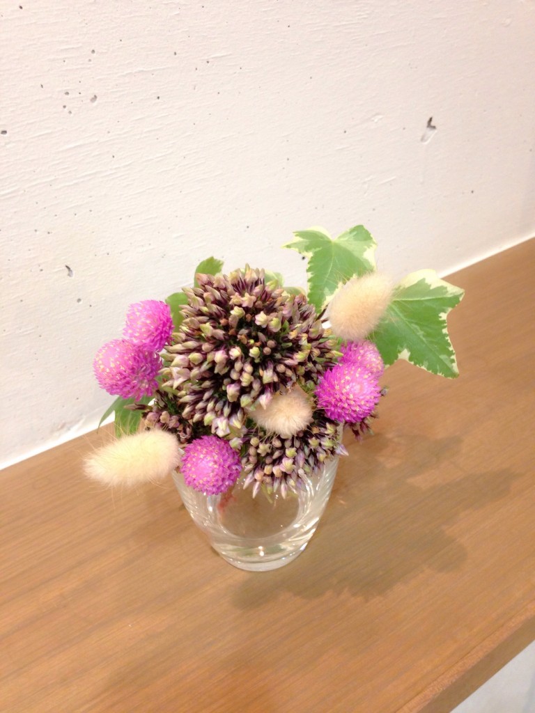 左に垂れ下がっているのは蕾付きのバジル!あとは店にある緑をちょこちょこと入れてみました。
