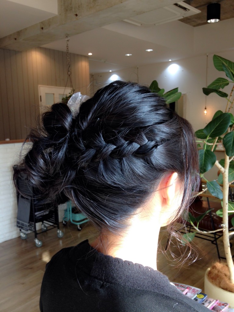 ◆ピアノの発表会に参加される中学生。可愛らしい白のワンピースを着られていたので服に合うように編み込みも入れつつキュートめにっ♡