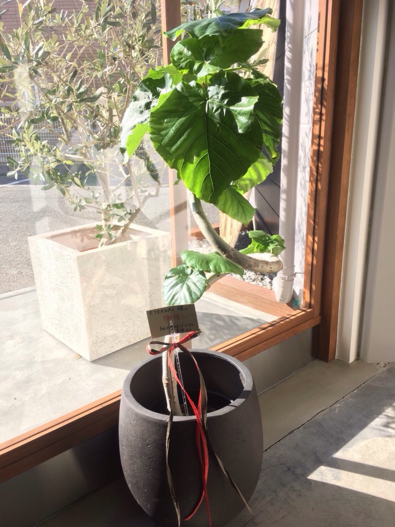 枝の曲線がかわいいウンベラータをチョイス!鉢はお友達の希望の濃い色に!!