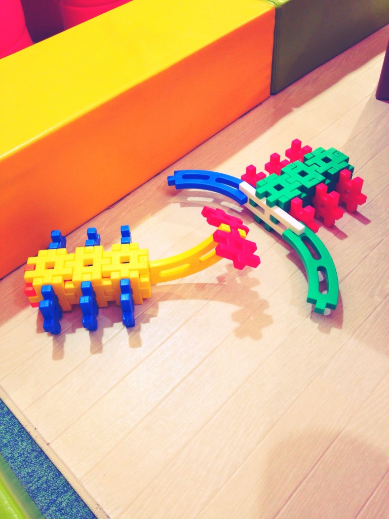 絵を描くのはあまり得意ではない息子ですが、ブロックなどは好きなようで保育園やおばあちゃんちではよく遊んでいるようなのですが家ではあまり遊ばずどんなものを作っているかあまり見たことがなかったのですが「カブトムシとクワガタつくる~」と言いだし黙々と・・・
