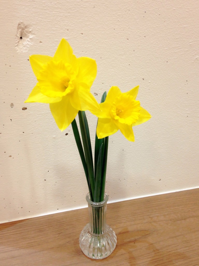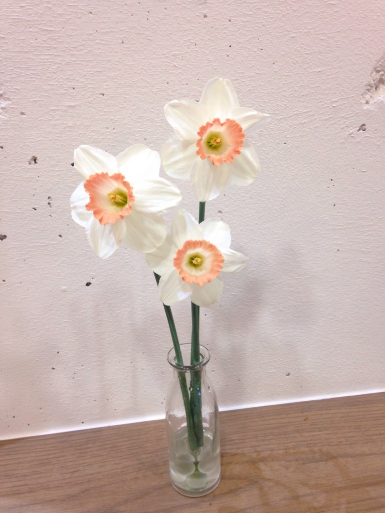 明日からいよいよ4月が始まり、新生活をスタートされる方も多いのでは!? 不安と期待が入り混じるドキドキの季節ですね! では3月後半のお花のご紹介!まずは、くじゃく草! 次は主人の実家から摘んできた水仙とチューリップ!