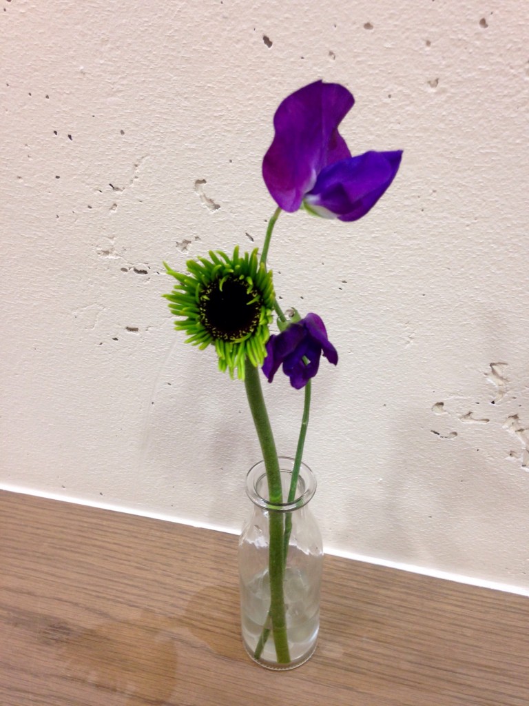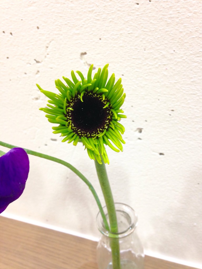 変わった品種のガーベラとスイトピー!このガーベラきれいかと言われると・・・ですが珍しさだけで買ってみました(笑)