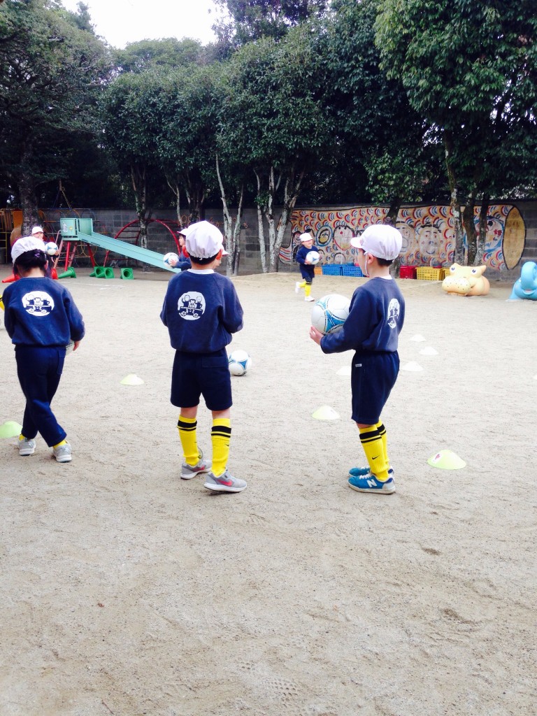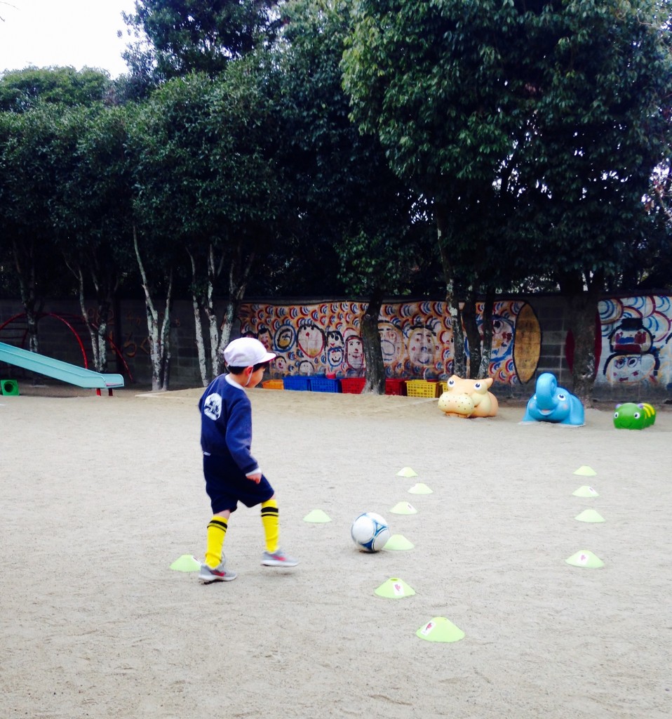 息子が通っている保育園は年長になるとパープルサンガさんが月に1回ですがサッカーを教えに来てくれるんです(^^♪
