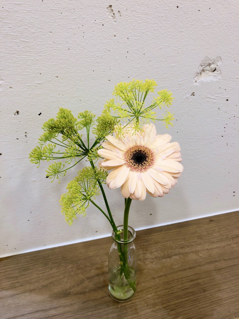 最後は、ウイキョウの残りとまだ元気だった白のガーベラを合わせてみました!