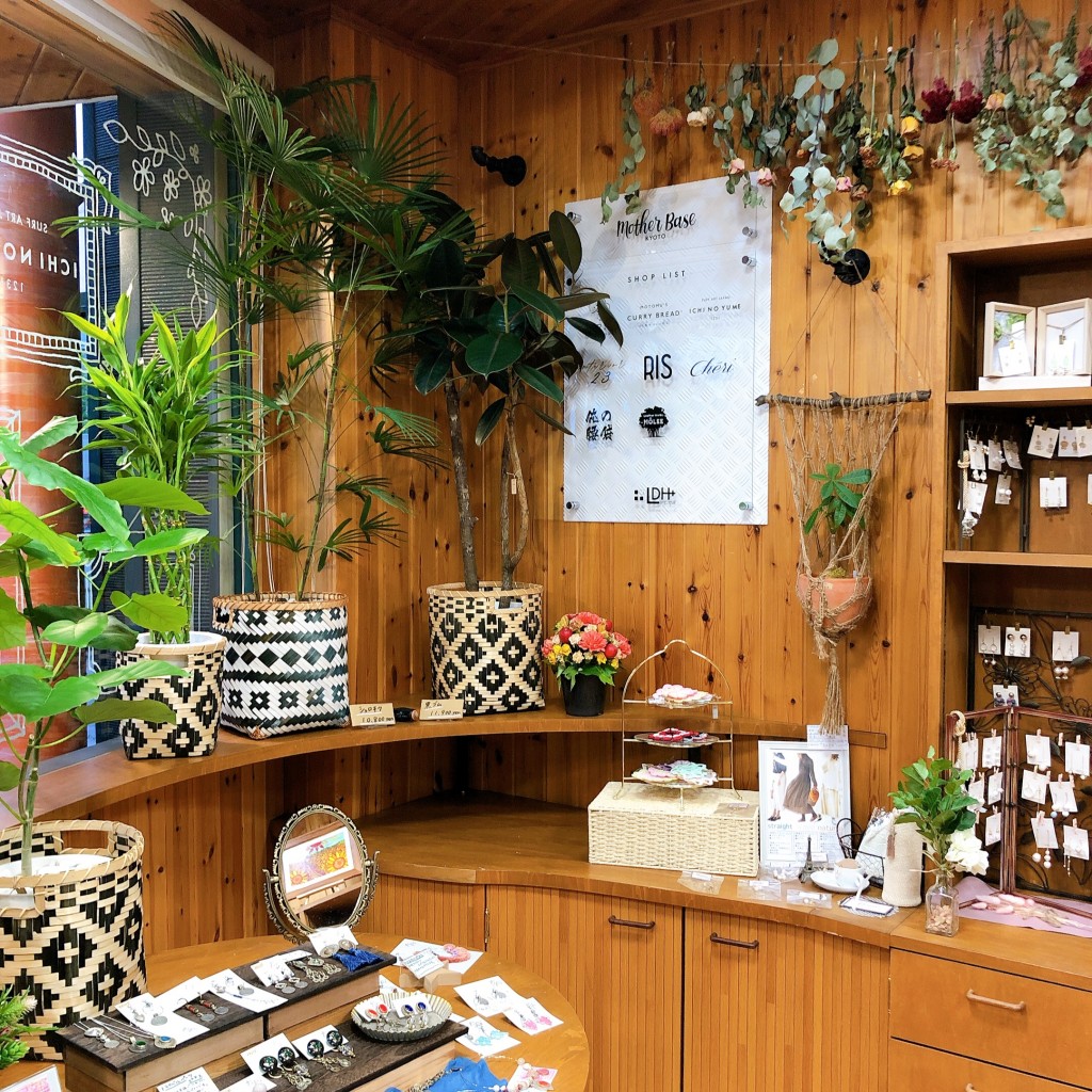山科の方は「Mother Base」と言う"京都のお母さんを応援するハンドメイドショップのようで京都を拠点に活動しているアーティスト・職人・画家などの作品をオーナーが厳選し展示販売を行い、その同じ店舗内でバナナジュースの販売も行っている複合型店舗(ミクストラン)"だそうです。