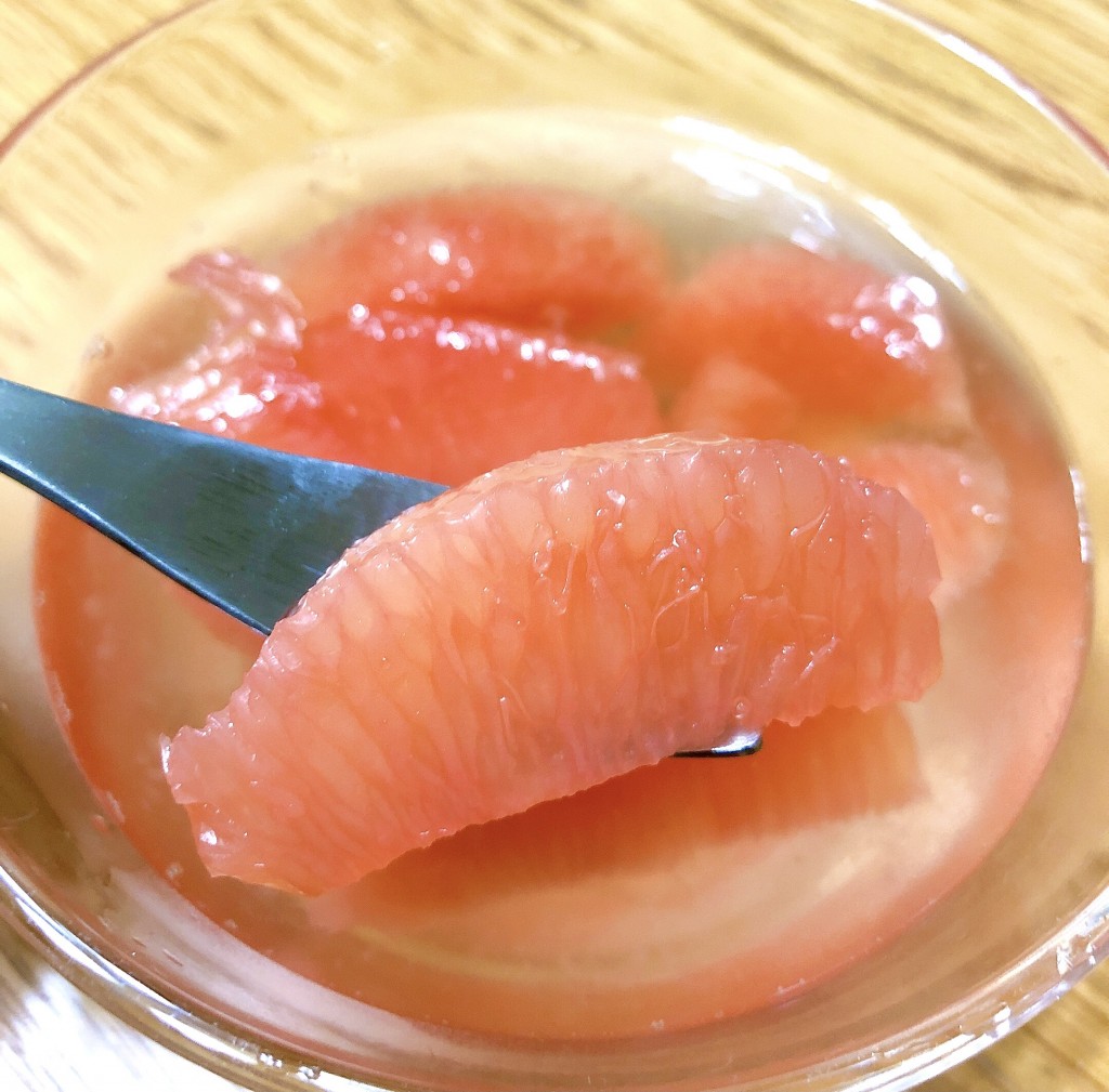 シロップ漬けとは言うもののみかんの缶詰のように甘くなく、シロップはあっさり!実はすごくフレッシュ!!