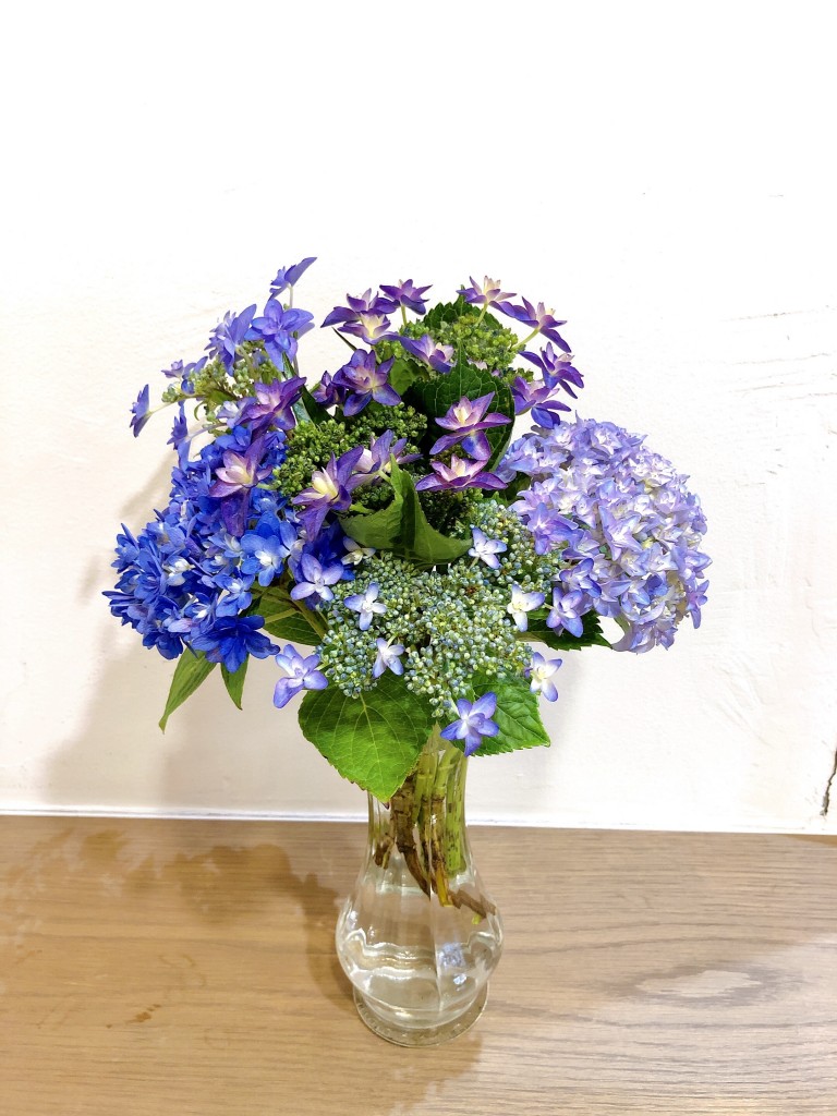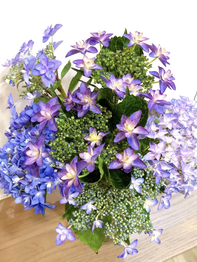 今年もお客様が庭で咲いたあじさいをたくさん持って来て下さいました~(*^o^*)